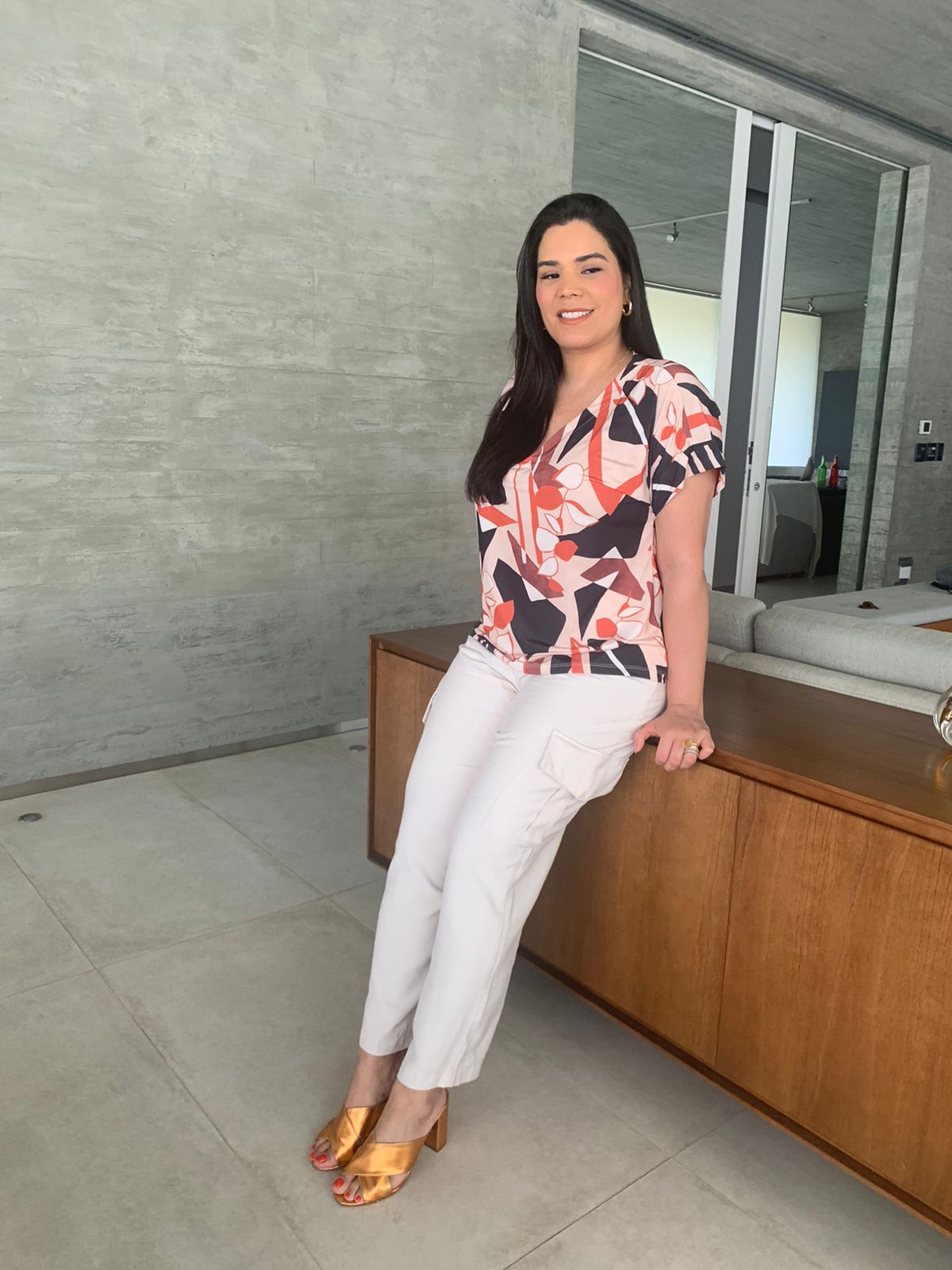 Estilo e frescor em uma peça só! Esta blusa feminina estampada traz uma padronagem moderna, ideal para dar um toque vibrante ao visual. Com decote quadrado e mangas curtas amplas, ela proporciona leveza, conforto e sofisticação.