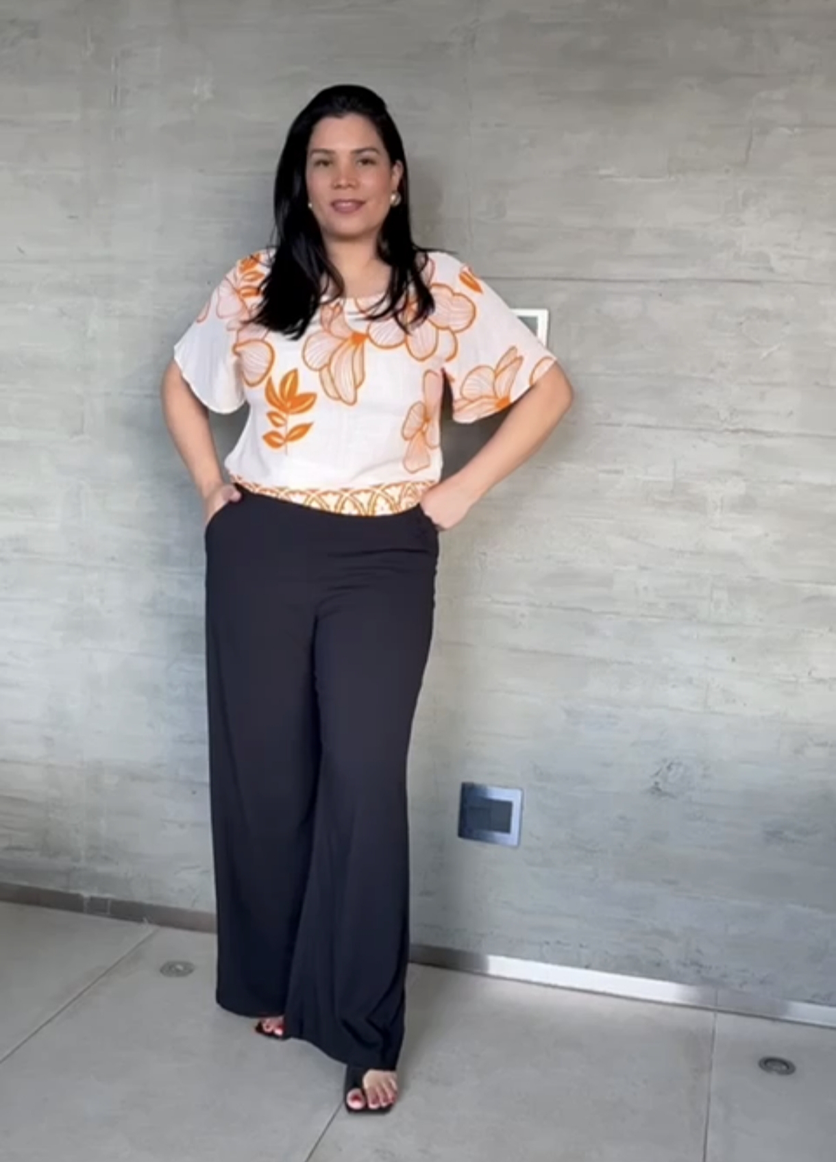 Calça em viscolinho super confortável, com estilo pantalona moderno e sofisticado! Com elástico na cintura, oferece caimento perfeito e muita liberdade de movimento. Ideal pra quem busca conforto sem abrir mão do estilo!